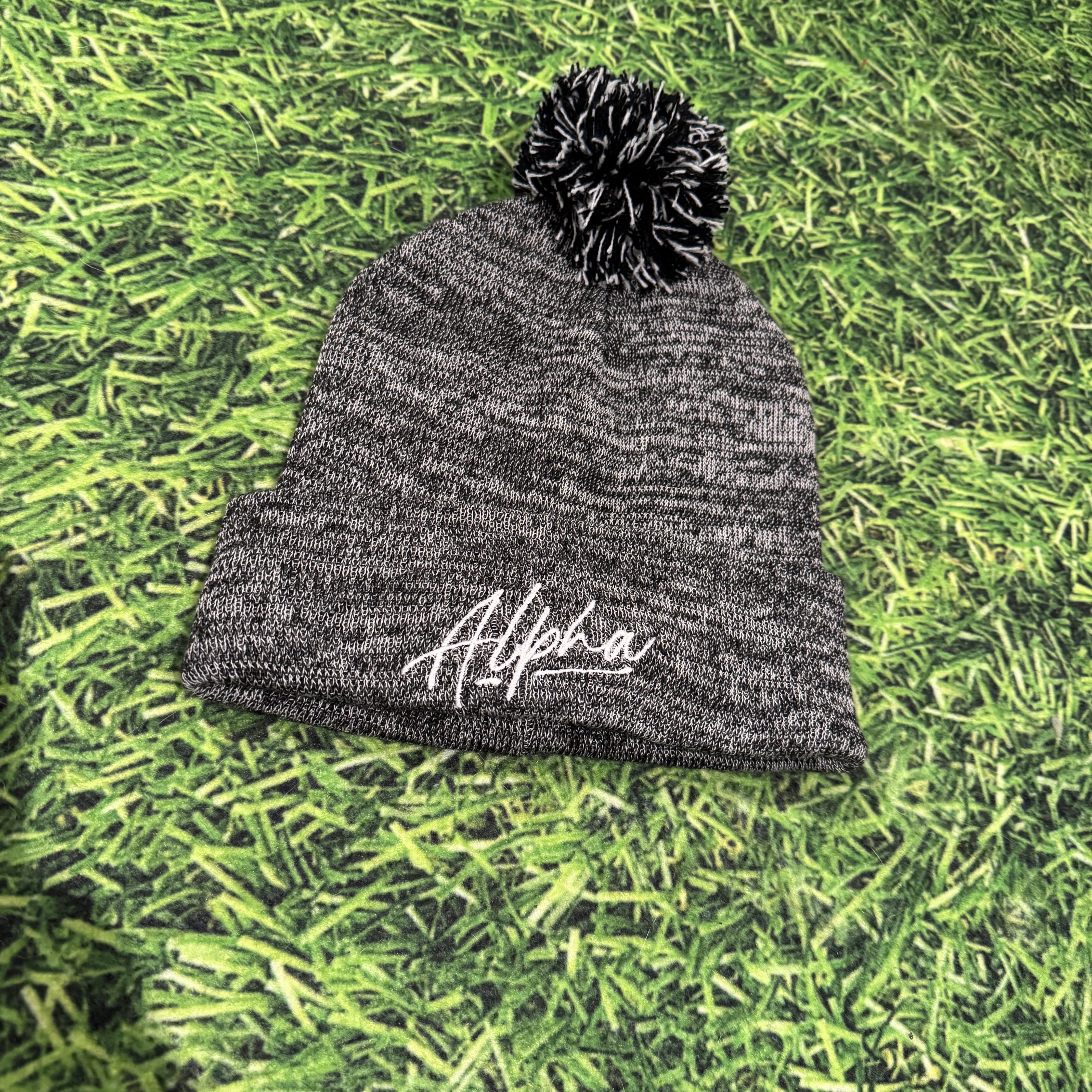Stay warm in style with this grey knit beanie featuring the original Alpha logo. Soft, comfortable, and easy to wear, it’s the perfect grab-and-go accessory for colder days.