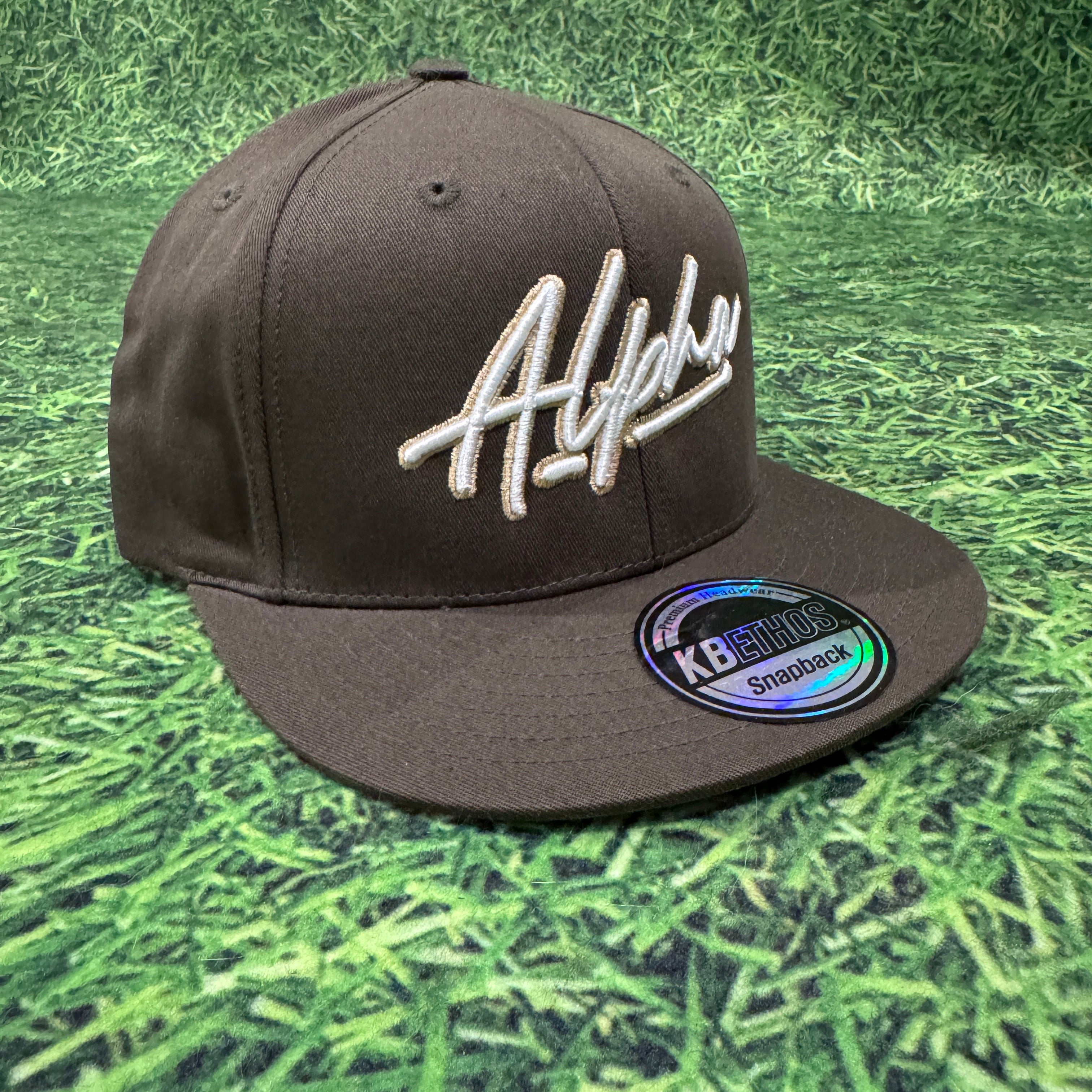 Upgrade your everyday look with this military green snapback with the original Alpha logo embroidered in white and Vegas Gold. Designed for effortless style, this hat pairs seamlessly with any casual outfit.